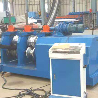 يتم معالجة إطار المعدات بواسطة صفيحة فولاذية A3 ، بعد معالجة الشيخوخة ، هيكل 3 عجلات ، 1 أعلى و 2 أسفل ، يتبنى العجلة السفلية هيكلًا ثابتًا ،يستخدم الدوار العلوي تعديل حركة المنزلق، و 3 مجموعات من محرك صندوق التوربين يتم تشغيلها من قبل المحرك لضبط أعلى وأسفل صندوق التوربين متصلة بواسطة قضيب الاتصال لضمان مزامنة 3 مجموعات من الصناديق،و 3 لوحات الحائط المستقلة متصلة بواسطة عمود لضمان التوازي من الآلة بأكملها. قطر عمود الدوار 110mm. هناك مجموعتين من القوالب على اليسار واليمين، واحدة للقوس الداخلي والآخر للقوس الخارجي، ومجموعة من المحرك الرئيسي 15KW.انها مدفوعة بواسطة ZQ500 خفض، الذي يدفع العمود السفلي الأيسر واليمين من خلال التروس. وحدة التروس 10m، واحد لكل يسار ويمين. يتم معالجة المنتج من خلال وحدة التحكم.